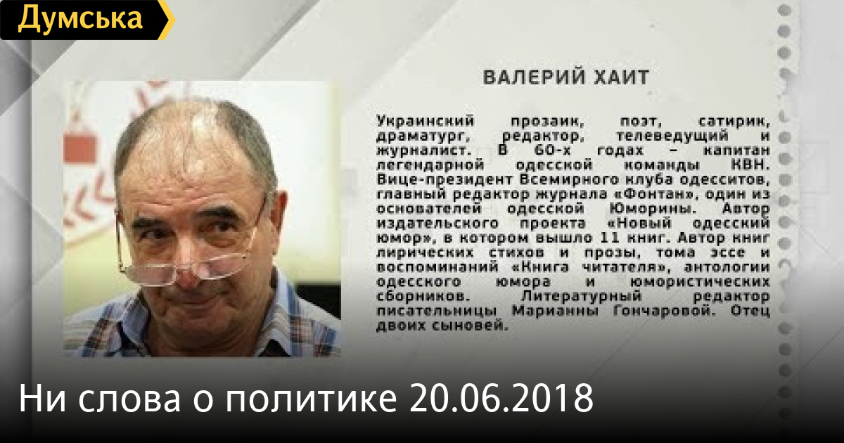 Валерий Хаит, поэт, сатирик СМЕРТЬ РОССИЙСКИМ ОККУПАНТАМ! Заметили ошибку? Выделяйте слова с ошибкой и нажимайте control-enter Думская ТВ. Ни слова о политике (День на Думской):