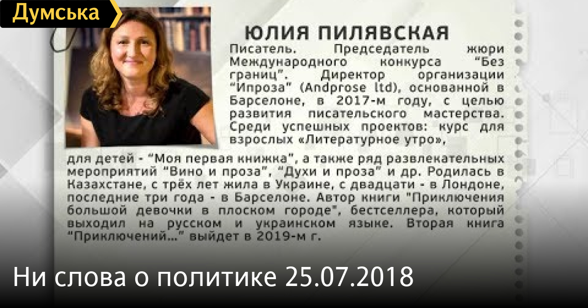 Юлия Пилявская — председатель жюри СМЕРТЬ РОССИЙСКИМ ОККУПАНТАМ! Заметили ошибку? Выделяйте слова с ошибкой и нажимайте control-enter Думская ТВ. Ни слова о политике (День на Думской):