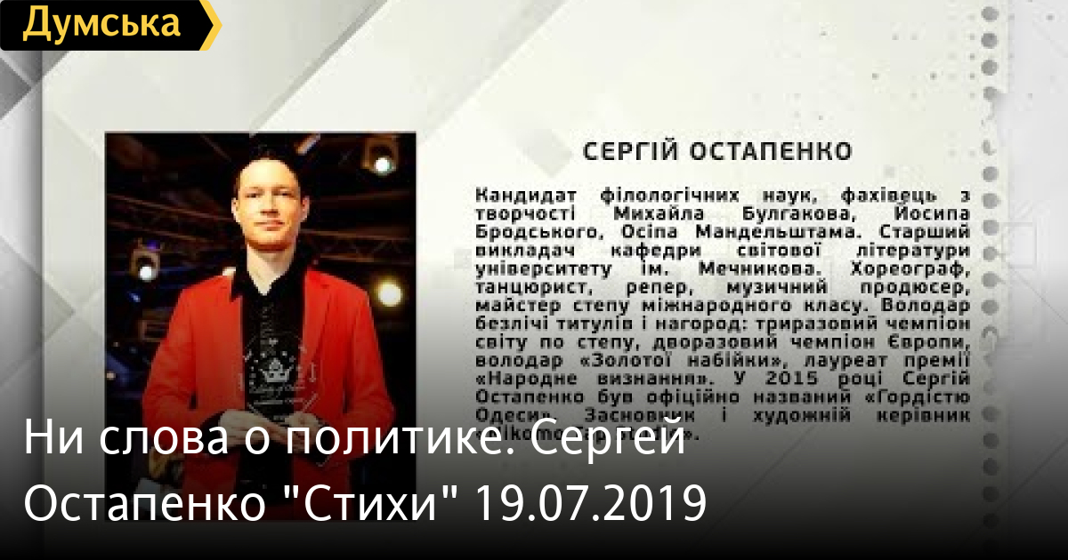 Ни слова о политике. Сергей Остапенко «Стихи» 19.07.2019