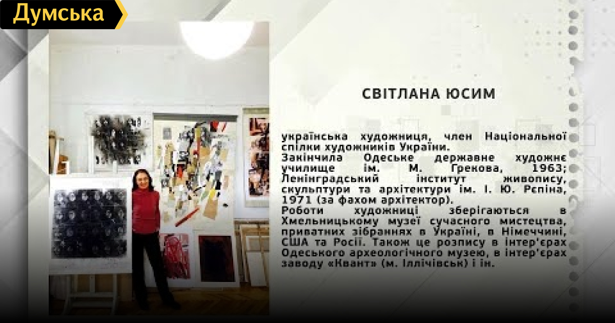 Светлана Юсим — художница СМЕРТЬ РОСІЙСЬКИМ ОКУПАНТАМ! Помітили помилку? Виділяйте слова з помилкою та натискайте control-enter Думская ТВ. Ни слова о политике (День на Думской):