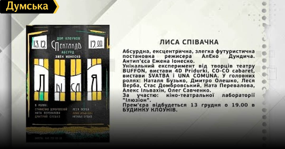 ТЕМА: ПРЕМ'ЄРА СПЕКТАКЛЮ «ЛИСА СПІВАЧКА» В БУДИНКУ КЛОУНІВ