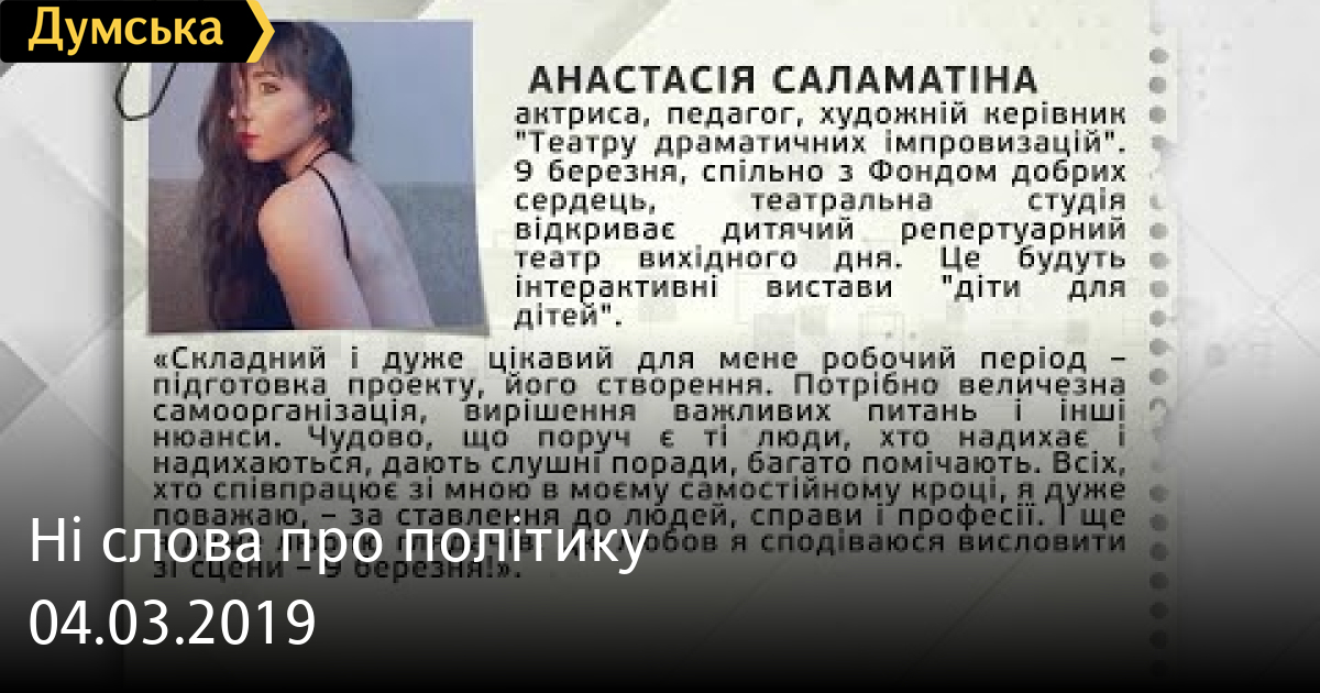 ТЕМА: ПРО ВІДКРИТТЯ ДИТЯЧОГО ТЕАТРУ СМЕРТЬ РОССИЙСКИМ ОККУПАНТАМ! Заметили ошибку? Выделяйте слова с ошибкой и нажимайте control-enter Думская ТВ. Ни слова о политике (День на Думской):