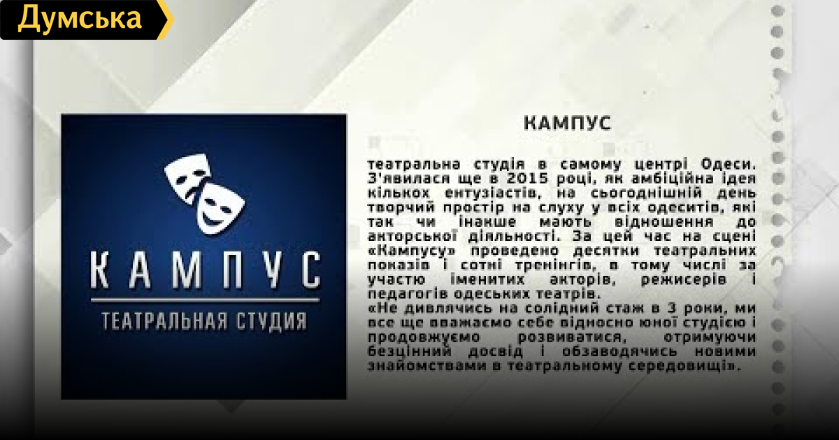 ТЕМА: НЕЗАЛЕЖНА ТЕАТРАЛЬНА СТУДІ «КАМПУС»: ВІД ЕТЮДІВ ДО ВИТАВ