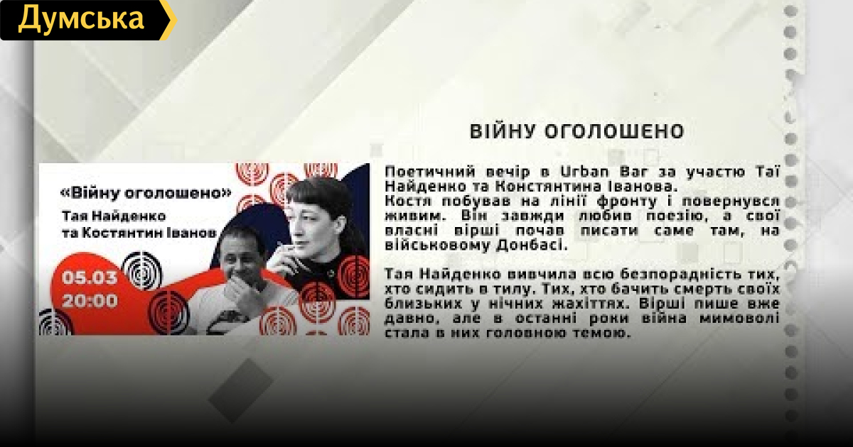 ТЕМА: ПОЕТИЧНИЙ ВЕЧІР «ВІЙНУ ОГОЛОШЕНО» В URBAN BAR
