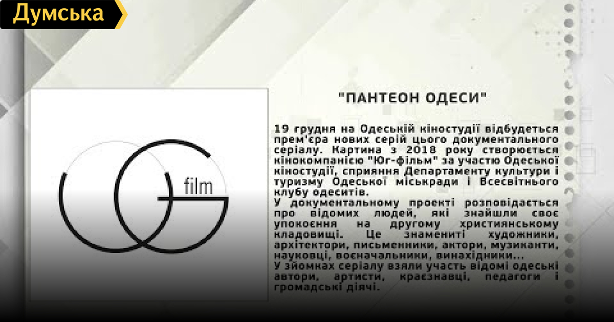 ТЕМА: ПРЕМ’ЄРА НОВИХ СЕРІЙ СЕРІАЛУ “ПАНТЕОН ОДЕСИ»