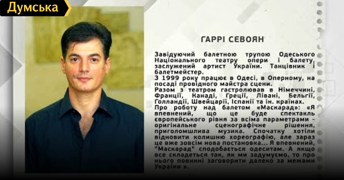 ТЕМА: ПРЕМ’ЄРА БАЛНТУ «МАСКАРАД» В ОПЕРНОМУ