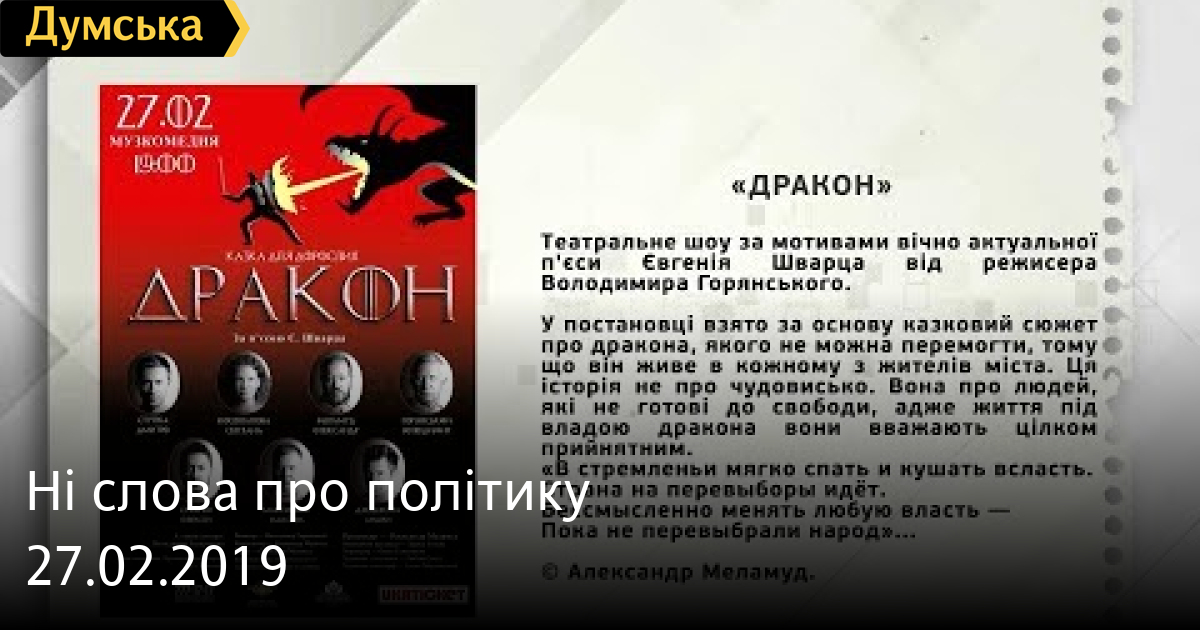 ТЕМА: ВИСТАВА ЗА МОТИВАМИ П’ЄСИ ШВАРЦА «ДРАКОН»