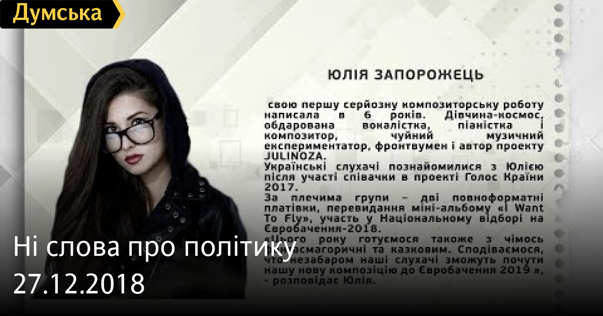 Юлія Запорожець — піаністка, вокалістка СМЕРТЬ РОССИЙСКИМ ОККУПАНТАМ! Заметили ошибку? Выделяйте слова с ошибкой и нажимайте control-enter Думская ТВ. Ни слова о политике (День на Думской):