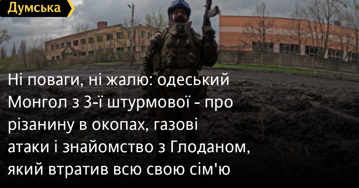 Ні поваги, ні жалю: одеський Монгол з 3-ї штурмової — про різанину в окопах, газові атаки і знайомство з Глоданом, який втратив всю свою сім'юІсторики підрахували, що в ході найзапекліших боїв Другої світової середня тривалість життя піхотинця на передовій становила 15-20 хвилин. Зрозуміло, що це стосувалося не кожного, але в цілому плюс-мінус було так. Повномасштабна війна в Україні теж супроводжується колосальними втратами сторін, особливо серед піхоти, але середні показники виживаності на полі бою все ж не такі — ми б сказали, зовсім не такі. Проте на «нулі» страшно, дуже страшно, смертельно страшно Ваша редакція вважає, що всі українські піхотинці, які пробули хоча б добу в цьому жаху, гідні високих державних нагород, всіляких пільг і довічної вдячності з боку народу і держави. Схиліть перед ними голови! Щоб хоч якось зрозуміти, як це, ми поспілкувалися з ветераном 3-ї штурмової Дмитром Гудзем, позивний Монгол, який отримав Золотий хрест за успішну атаку в районі Хромового на донецькому напрямку. Хромове (до 2016 р. Артемівське) селище в Бахмутській міській громаді Бахмутського району Донецької області. Це західне передмістя Бахмута. Населення до війни трохи менше ніж 1000 осіб. З півночі та заходу від селища пагорби. По-військовому панівні висоти. Був сквер «Дружба», дитячий садок «Посмішка», кладовище і відділення «Нової пошти», скверик, кілька магазинчиків та мила кав'ярня. Бої за містечко велися з кінця 2023 року, у 2024-му воно було повністю окуповане ворогом. Той день Монгол запам'ятав на все життя. Вже досвідченого й обстріляного бійця командування нарешті визнало готовим, дозволивши брати участь у повноцінному штурмі. На нього одесит Дмитро Гудзь пішов першим у складі групи з восьми солдатів. Завдання — очистити від противника лінію окопів. «На емках (американські БТР M113) висуваємося на позиції, спішимося і по наших траншеях, зайнятих Нацгвардією, добираємося до дороги. Працює наша арта, потім перебігаємо її, і ось ми в окопах у підарів (вибачте за мат, так більшість українських військових саме так називає ворога, втім, це взаємно, — Ред.). Над нами завжди висить наша «пташка» (розвідувальний дрон), у кожного другого номера рація. Командир взводу докладно інформував, де противник, через скільки метрів, і ми розуміли, що робити конкретно в кожну секунду бою. Мій перший контакт з противником: дивлюся, в двадцяти метрах підіймається голова, каска в пікселі, я дивлюся на чувака й дивуюся, невже наш? Дивлюся на нього, а він на мене якусь мить. І він тут починає лопотати по своїй радійці: «Бачу укропа, бачу укропа в синій касці». І понеслося. Незабаром його не стало, як і всіх їх». У бою, який тривав з раннього ранку до четвертої вечора, два взводи 3-ї виконали поставлене завдання і ліквідували близько 60 солдатів противника, не втративши жодного свого. Кілька воїнів отримали легкі поранення. Всі ґрунтовно постріляли, всі бачили очі ворога, що є рідкістю в сучасній війні. Вибухи гранат, автоматні черги, запах гару з відтінком гнилявої мертвечини, берці ковзають по схилах Дмитро Гудзь діяв вміло та наполегливо, за що й отримав хрест. Від його руки полягло п'ятеро окупантів. «Мене іноді запитують, а що ти відчуваєш стововно противника? — каже захисник. — Як би вам пояснити. Коли я просувався по цій окопній лінії, то там все було завалено трупами. На жаль, н