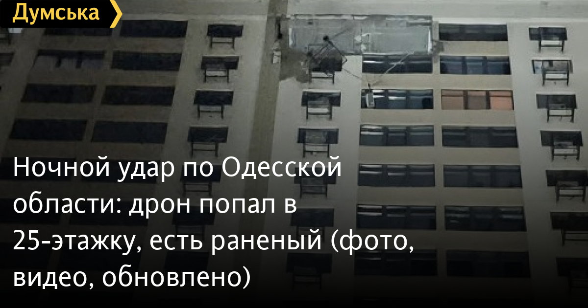 Ночной удар по Одесской области: дрон попал в 25-этажку, есть раненыйОдин человек пострадал в результате атаки ударными беспилотниками по Одесчине в ночь на понедельник, 19 января. Под ударом также оказались энергетическая, газовая и гражданская инфраструктура региона, сообщили в ГСЧС. В местах попаданий возникли пожары, которые спасатели оперативно ликвидировали. На Поскоте беспилотник попал в 25-этажный жилой дом. Повреждены две квартиры, фасад здания, выбиты стекла как в самом доме, так и в расположенных рядом постройках. Также пострадали частные автомобили, припаркованные рядом. Кроме того, зафиксированы повреждения на территории одного из объектов критической инфраструктуры. По предварительной информации, в результате атаки ранен один человек. В настоящее время на местах работают все соответствующие службы, продолжается ликвидация последствий атаки и уточнение масштабов разрушений. СМЕРТЬ РОССИЙСКИМ ОККУПАНТАМ! Заметили ошибку? Выделяйте слова с ошибкой и нажимайте control-enter |