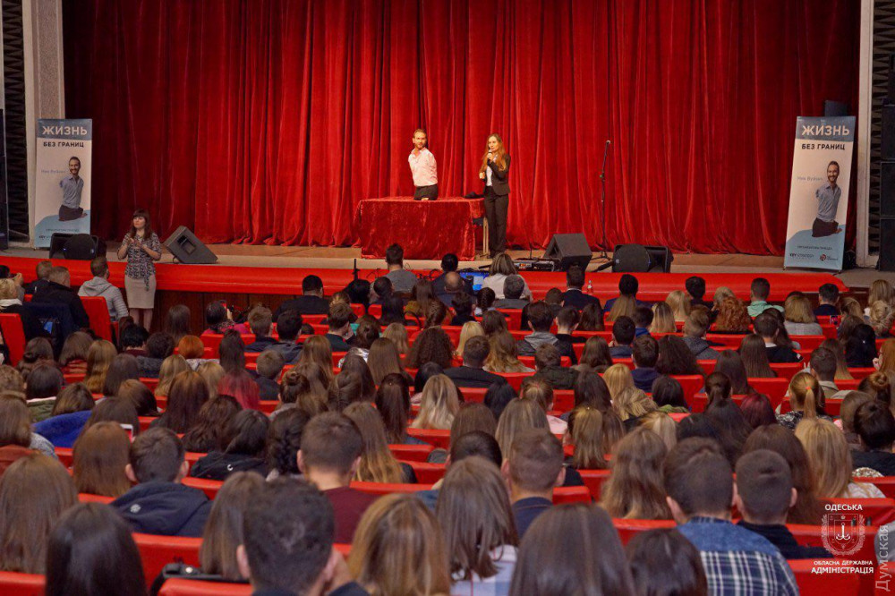 В концертном зале «Садов Победы» Вуйчич выступил перед одесскими школьниками и поделился своими воспоминаниями о буллинге.