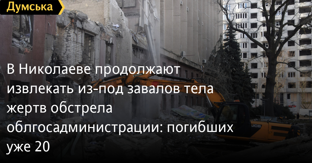 Число жертв ракетного обстрела Николаевской облгосадминистрации увеличилось до двадцати человек.