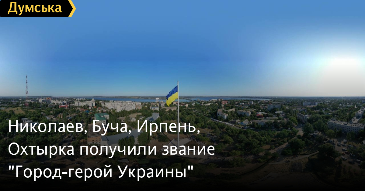 Четыре украинских города — Николаев, Буча (Киевская область), Ирпень (Киевская область) и Охтырка (Сумская область) получили почетный знак отличия «Город-герой Украины».
