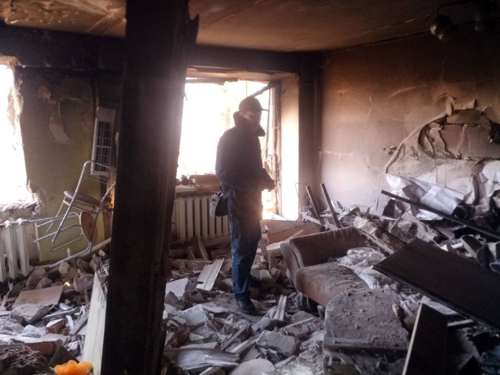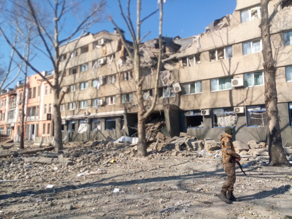 «Моя мать была здесь, когда снаряд попал по верхнему этажу. Здесь все горело, но мы ее вытащили, и сейчас с ней все хорошо, — рассказал нам николаевец Сергей.- Вот снова бьют по городу, но мы уже привыкли и обедаем под эти звуки».