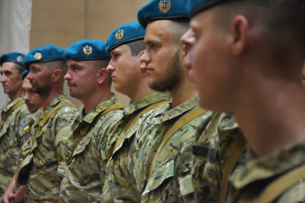 На торжественной церемонии наши защитники принесли клятву морского пехотинца. Береты военнослужащим вручил командир бригады полковник Виктор Сикоза.