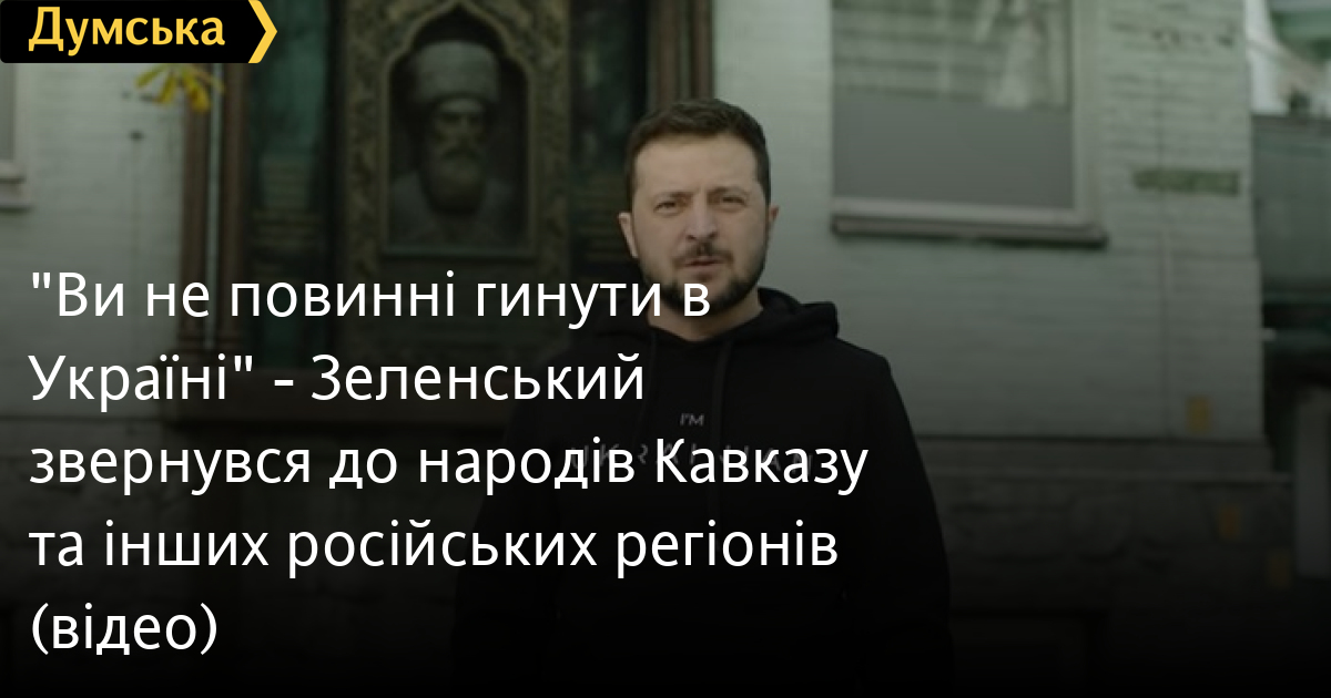«Ніхто не повинен брати участь у ганебній війні. Дагестанці не повинні гинути в Україні. Чеченці, інгуші, осетини, черкеси і будь-який інший народ, який опинився під російським прапором», — наголосив Володимир Зеленський.