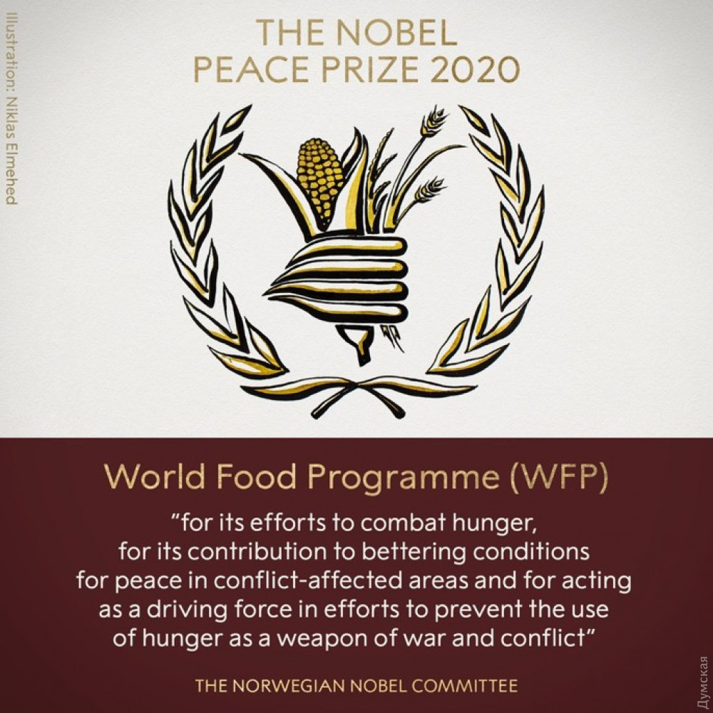 Нобелевскую премию мира получила Всемирная продовольственная программа ООН за борьбу с голодомВсемирная продовольственная программа стала обладателем Нобелевской премии мира 2020 года за борьбу с голодом. Об этом сообщает пресс-служба Нобелевского комитета. Всемирная продовольственная программа — самая крупная гуманитарная организация под эгидой ООН, которая занимается вопросами продовольственной безопасности и борьбой с голодом. Как сообщили в комитете, в прошлом году программа помогла более 100 миллионам людей из 88 стран мира, которые страдали от голода и нехватки продовольствия. Отметим, в этом году на премию мира претендовали 318 кандидатов (211 человек и 107 организаций). Согласно завещанию Альфреда Нобеля, премия мира присуждается тому, кто внес наиболее существенный вклад в сплочение наций, уничтожение рабства или снижение численности существующих армий, содействие проведению мирных конгрессов. Премия мира может присуждаться как отдельным лицам, так и организациям. В 2019 году награду присудили премьер-министру Эфиопии Абий Ахмед Али. Напомним, в 2020 году Нобелевскую премию по медицине вручили за открытие вируса гепатита С. Обладательницей премии в области литературы стала американская поэтесса Луиза Глюк. СМЕРТЬ РОССИЙСКИМ ОККУПАНТАМ! Заметили ошибку? Выделяйте слова с ошибкой и нажимайте control-enter |