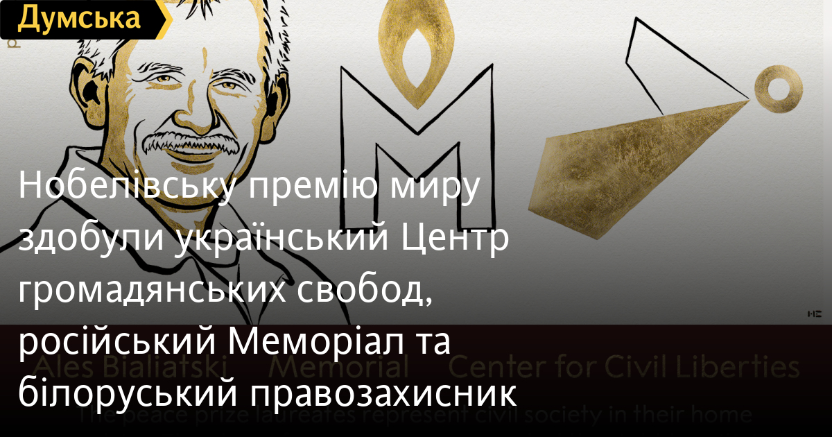 Нобелівський комітет розділив премію миру між українським та російським правозахисними рухами, а також репресованим білоруським дисидентом.