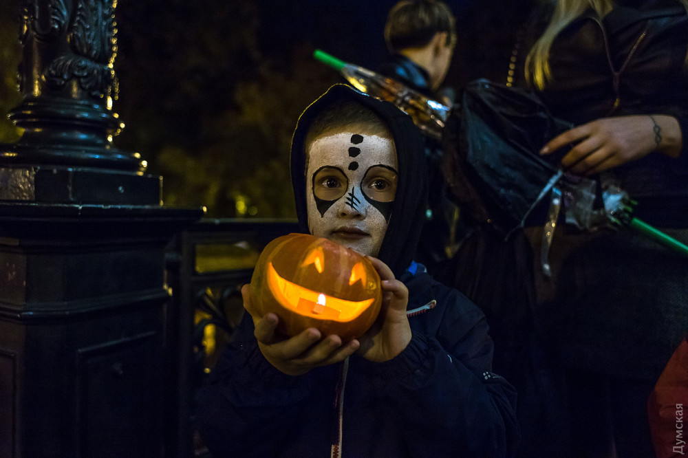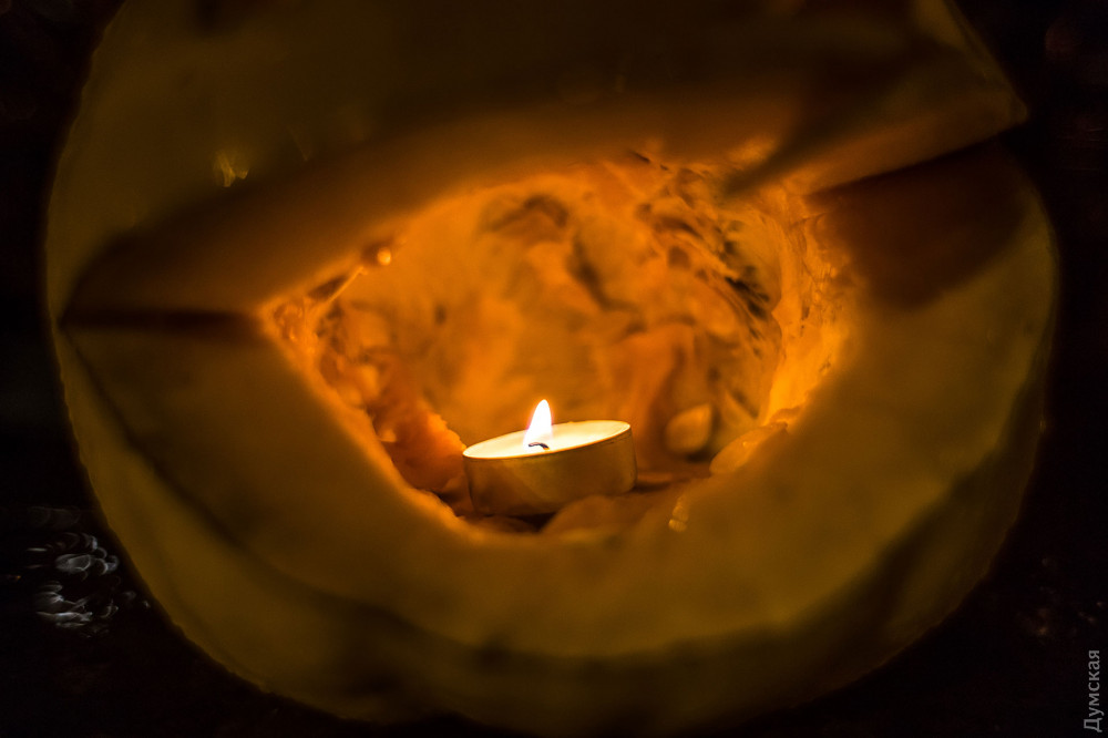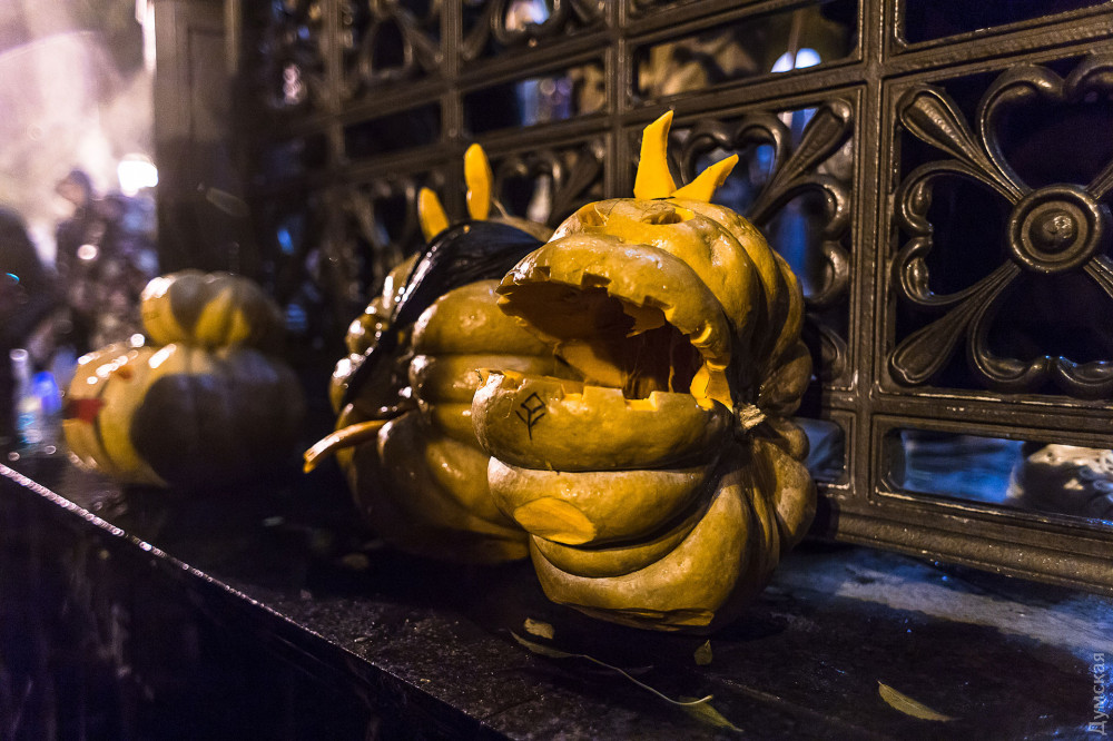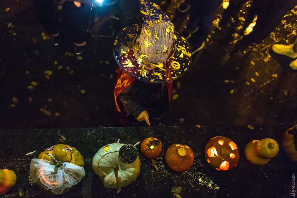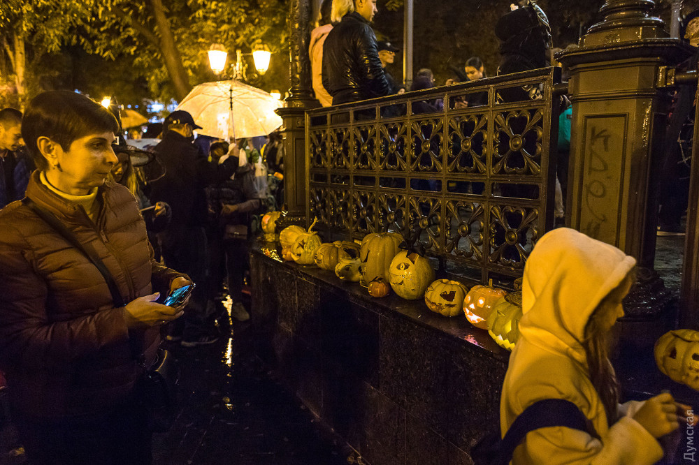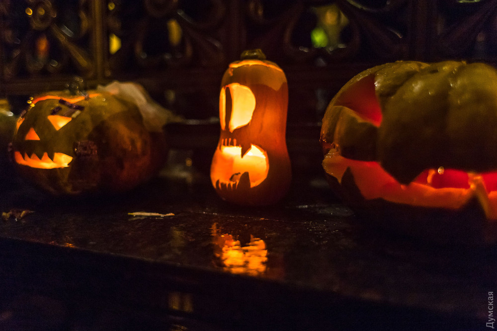 Любители страшного веселья приходили к ротонде целыми семьями, переодевшись в жуткие, а иногда и смешные костюмы. Самые маленькие гордо несли тыквы, вырезанные вместе с родителями и расставляли на парапете вокруг беседки.