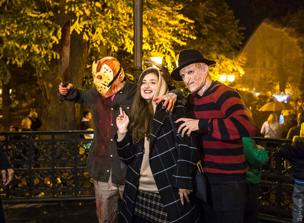 Детвора с удовольствием фотографировалась с обладателями самых ярких костюмов. Особым спросом пользовались герои американских ужастиков: Джейсон Вурхиз (главный герой серии фильмов «Пятница 13-е»), Фредди Крюгер (в представлении не нуждается) и Призрачное лицо (маньяк из фильмов «Крик»).