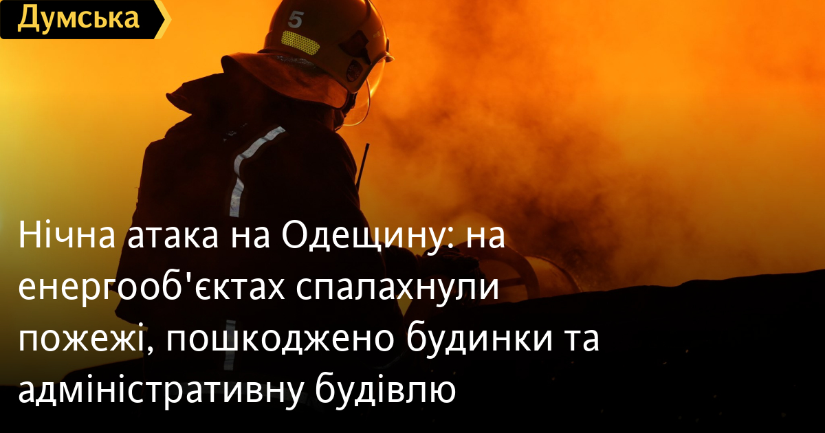 Нічна атака на Одещину: на енергооб'єктах спалахнули пожежі, пошкоджено будинки та адміністративну будівлю