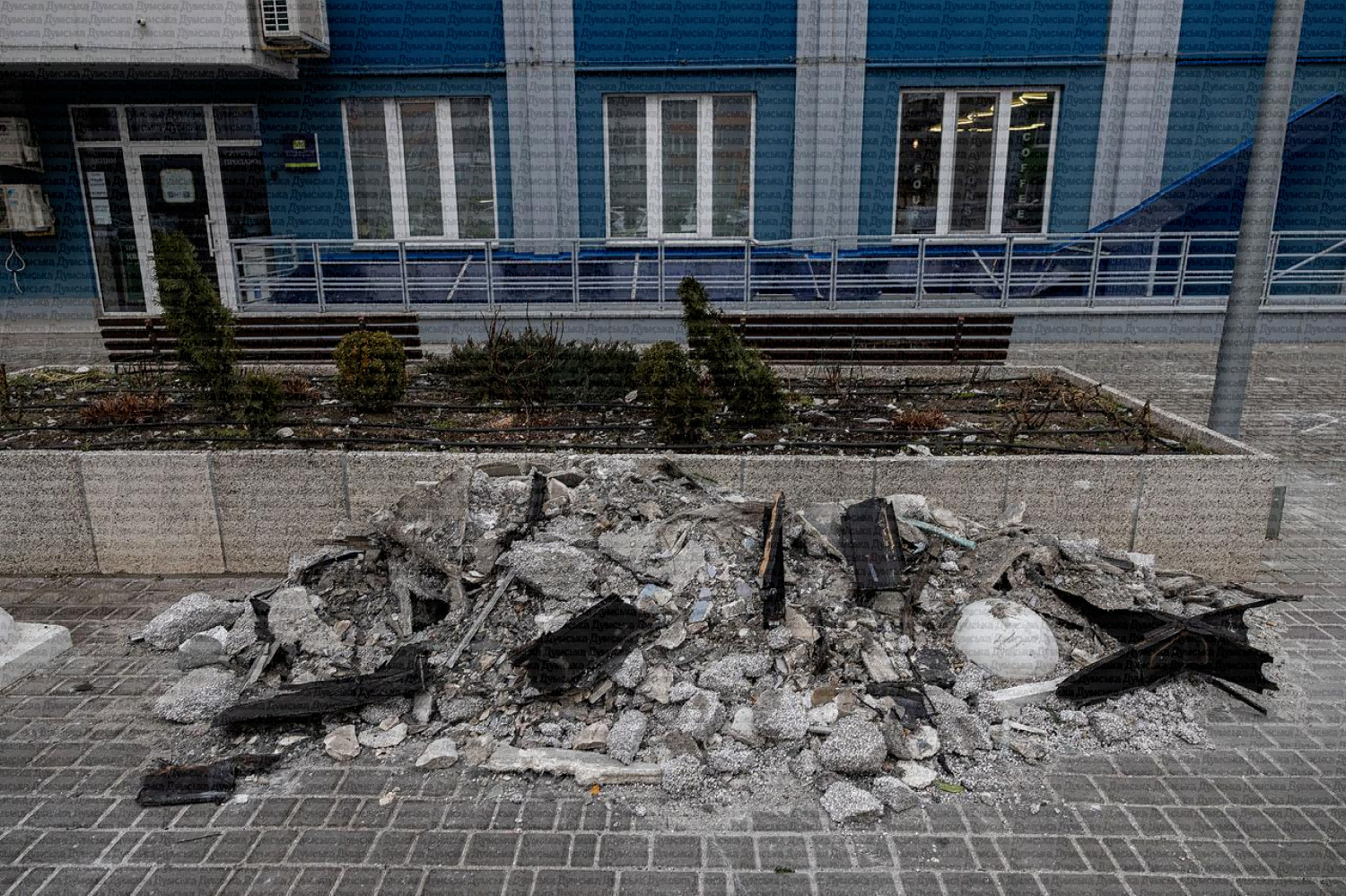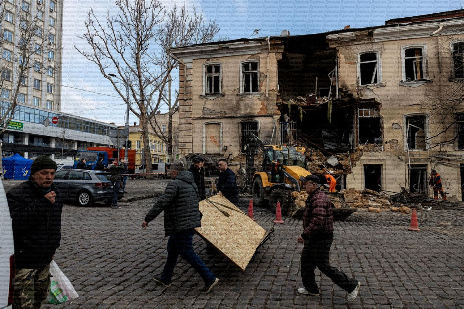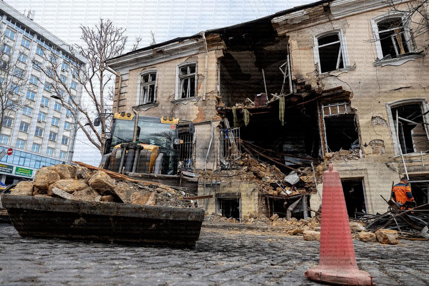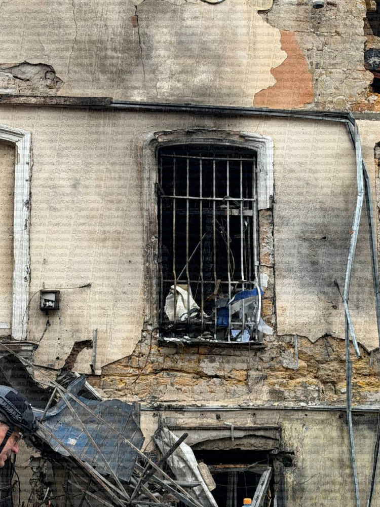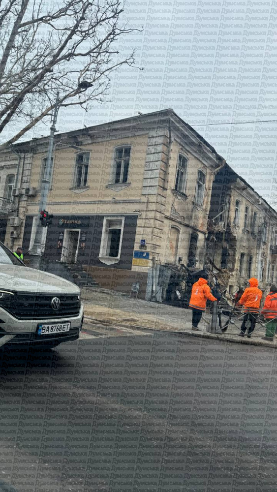 Последствия прилета на углу Еврейской и Ришельевской. Там самые большие разрушения во время вчерашней атаки.