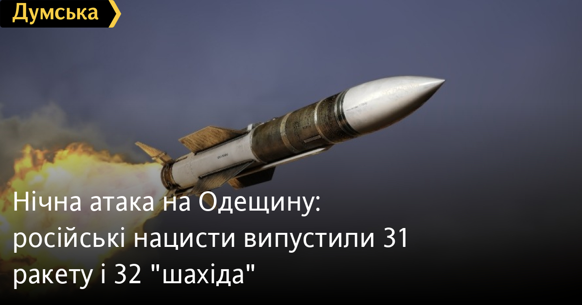 Окупанти атакували вночі Одеську область ракетами «Калібр», «Онікс», Х-22 і Х-59, а також дронами-камікадзе Shahed-136. Вдалося збити 14 ракет і 23 безпілотники.