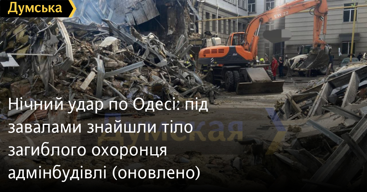 Тіло загиблого охоронця адмінбудівлі в центрі Одеси, у яку влучила російська ракета, знайшли під час розбору завалів.