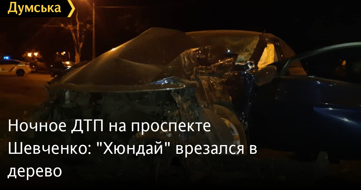 Авария с тремя пострадавшими случилась вчера около 12 часов ночи на проспекте Шевченко — водитель автомобиля «Хюндай» не справилась с управлением и врезалась в дерево.