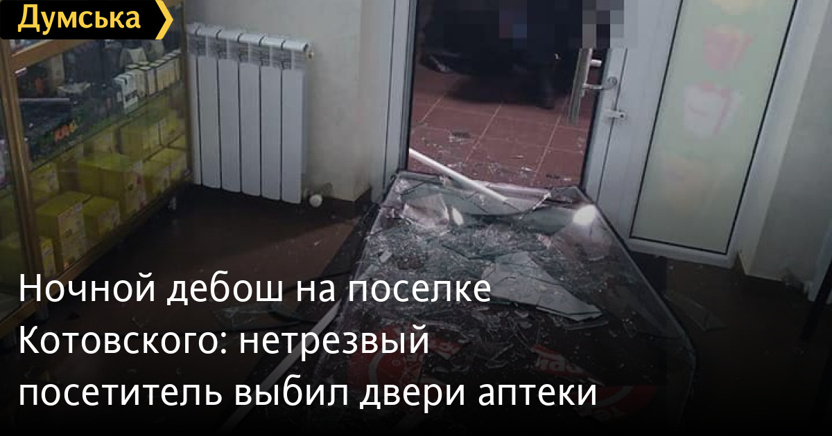 В Суворовском районе сегодня ночью задержали хулигана, который устроил дебош в аптеке. Вызов поступил около 2-х часов ночи. На месте происшествия правоохранителям пришлось успокоить нетрезвого посетителя — он разбил входную дверь аптеки и напугал сотрудницу. Задержанного доставили в отделение полиции для дальнейшего установления всех обстоятельств дела. СМЕРТЬ РОССИЙСКИМ ОККУПАНТАМ! Заметили ошибку? Выделяйте слова с ошибкой и нажимайте control-enter |