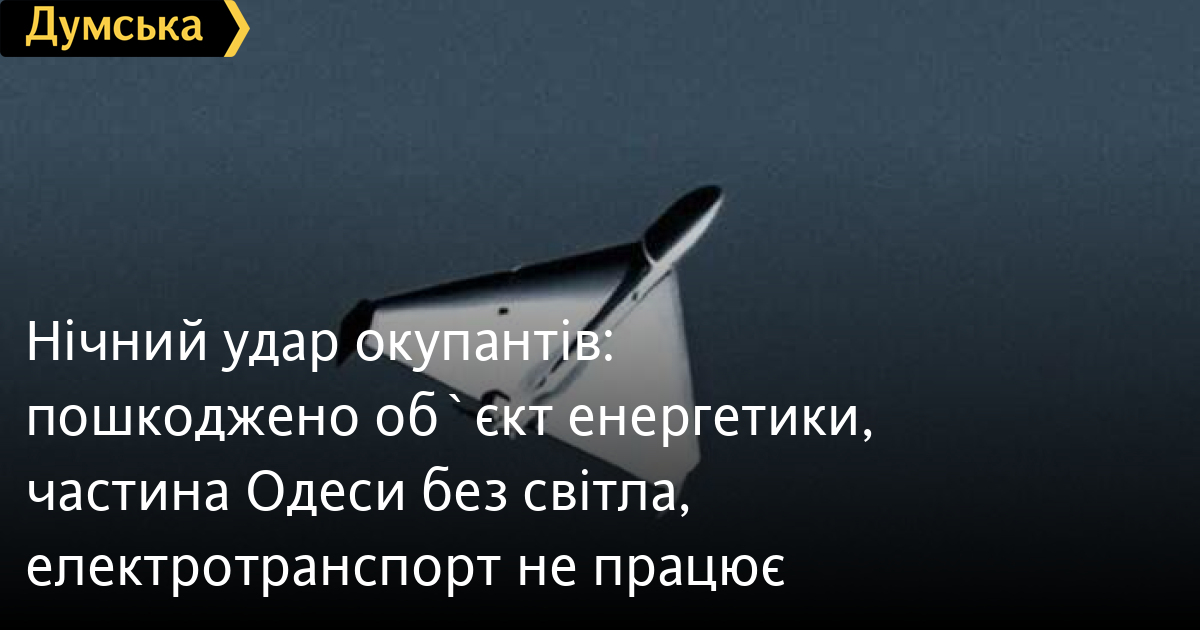 Чергової атаки з боку окупантів зазнала Одеська область у ніч на 25 березня. Внаслідок падіння уламку безпілотника пошкоджено енергетичний об'єкт.
