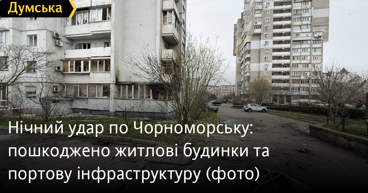 Нічний удар по Чорноморську: пошкоджено житлові будинки та портову інфраструктуруЦивільна і портова інфраструктура постраждали внаслідок нічного удару окупантів по Чорноморську. Як повідомив мер міста Василь Гуляєв, пошкоджено багатоповерхові та приватні будинки. «Зараз триває обстеження пошкоджень. У найкоротші терміни до роботи долучаться комунальні служби для ліквідації наслідків, прибирання територій та відновлення інфраструктури», — зазначив Гуляєв. Він додав, що станом на зараз інформація про постраждалих відсутня. Мер попросив жителів зберігати спокій і користуватися тільки офіційними джерелами інформації. Також повідомляється, що внаслідок нічного удару в одному з портів постраждали складські майданчики й ангари, адміністративно-побутові приміщення. Також зафіксовано загоряння контейнерів і цивільного автомобіля. СМЕРТЬ РОСІЙСЬКИМ ОКУПАНТАМ! Помітили помилку? Виділяйте слова з помилкою та натискайте control-enter |