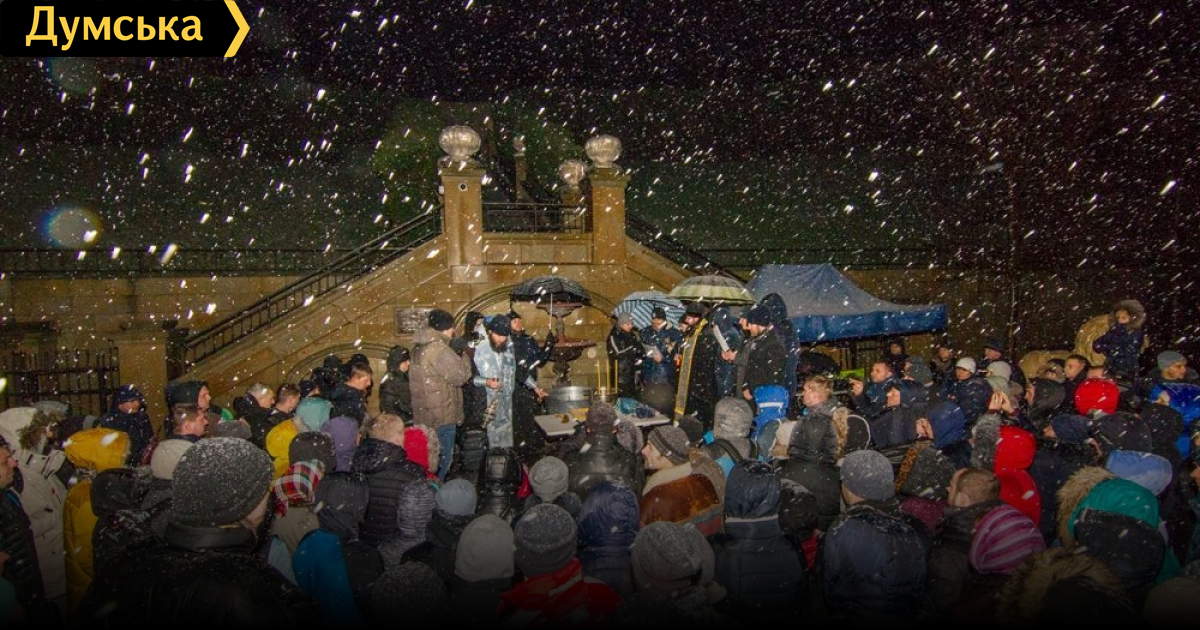Несмотря на снегопад и холодный ветер, сотни одесситов собрались ночью на пляже «Золотой берег» на 16 станции Большого Фонтана — чтобы окунуться в освященную морскую воду и очиститься от грехов.