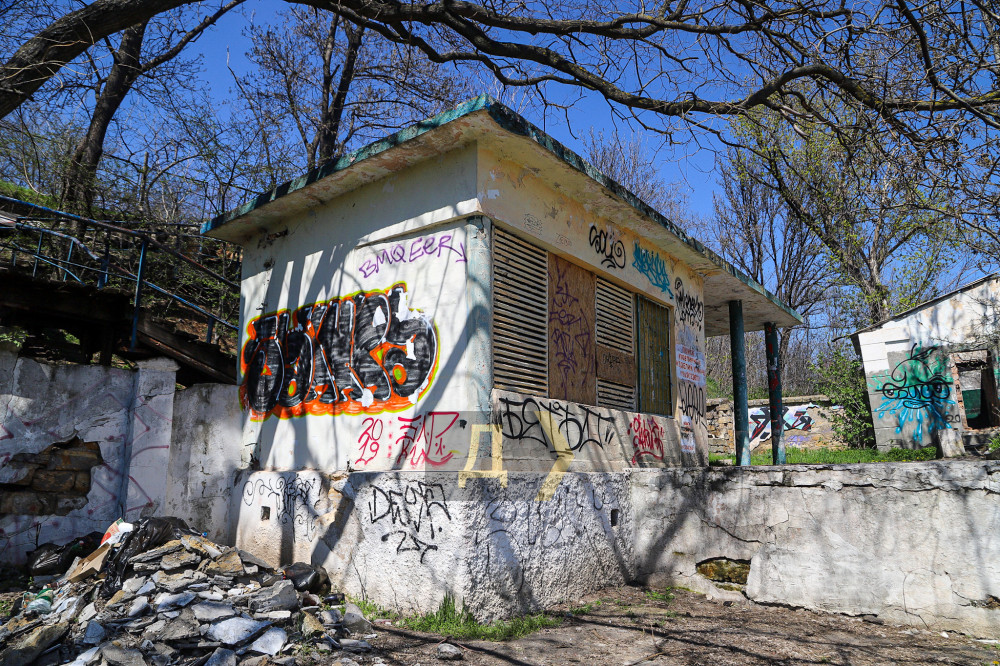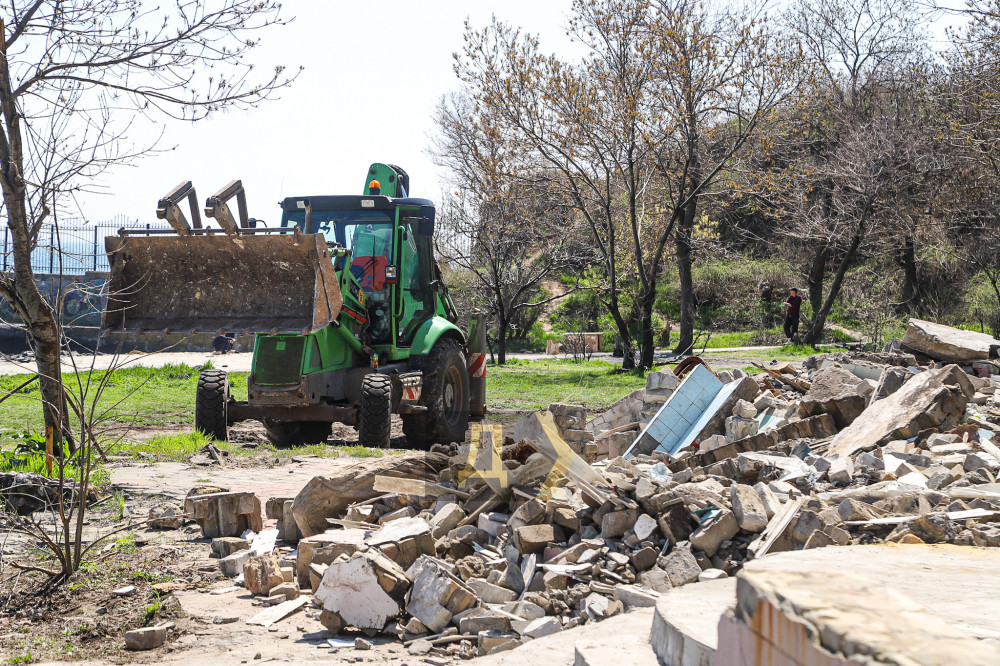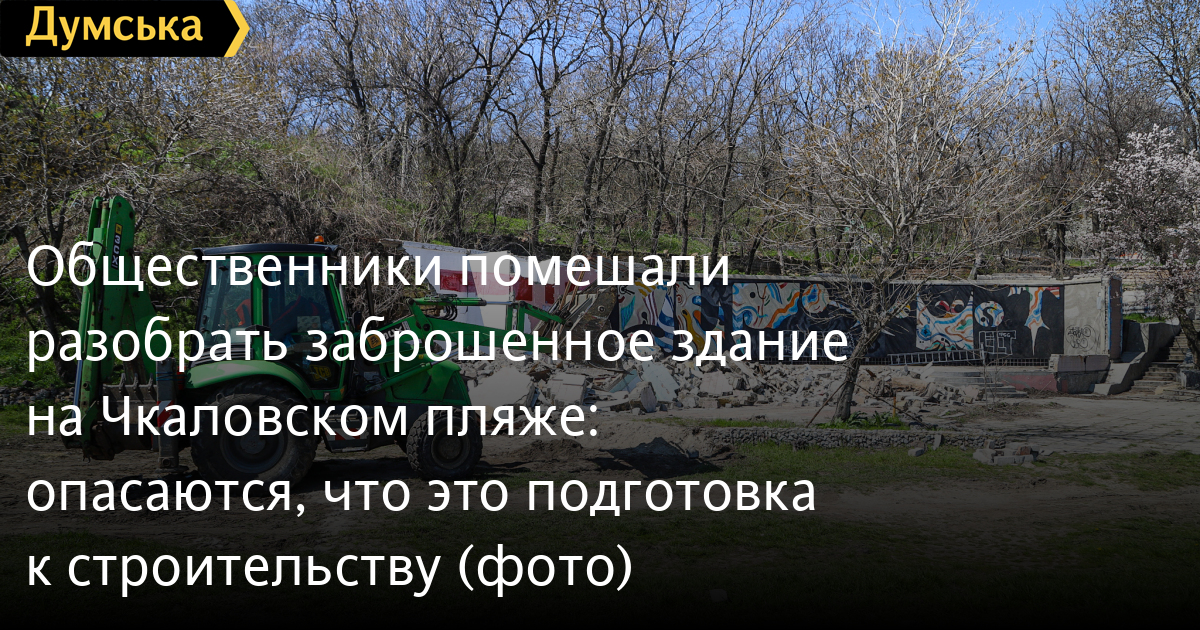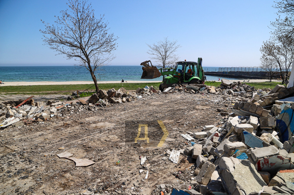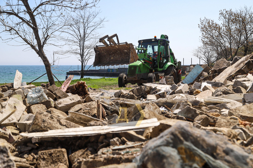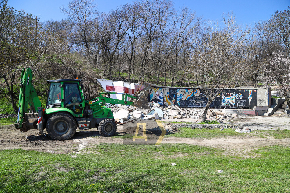 На заброшенную территорию под склоном заехала тяжелая техника: экскаватор и грузовик. Рабочие начали демонтировать здание, однако им помешали общественники, вызвавшие наряд полиции: они уверены, что это подготовка к застройке территории пляжа. При попытке скрыться строители повредили экскаватор.