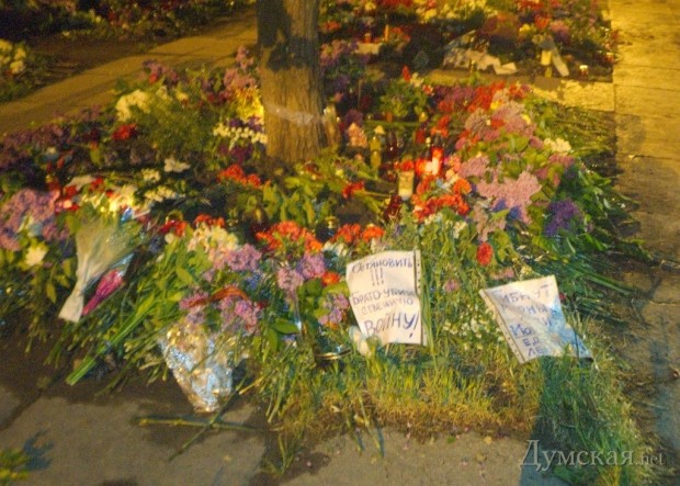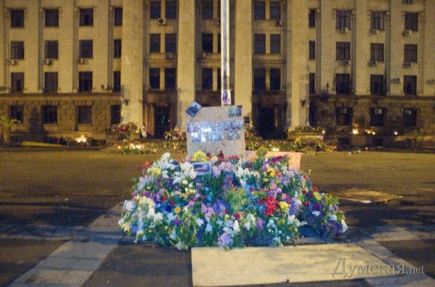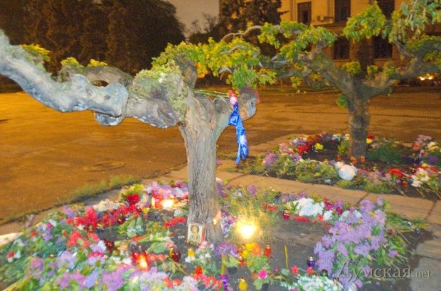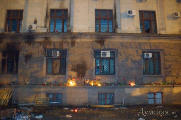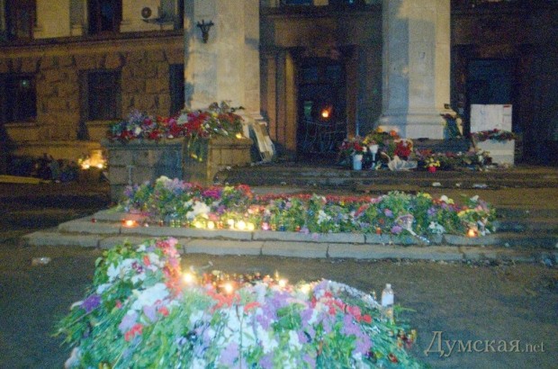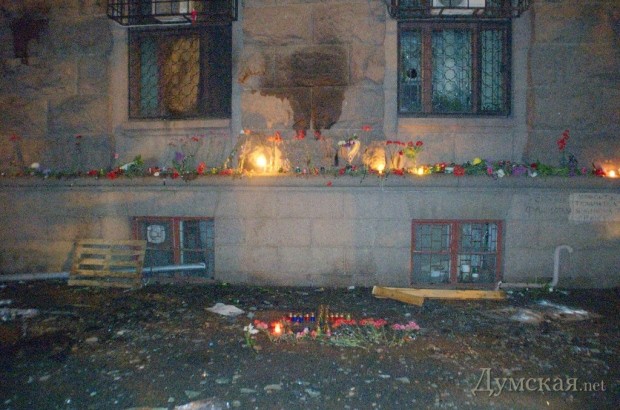 На площади Куликово Поле в Одессе и в здании федерации профсоюзов, где 2 мая в ходе уличных столкновений в результате пожара погибло более тридцати человек, в течение всей прошедшей ночи горели поминальные свечи.