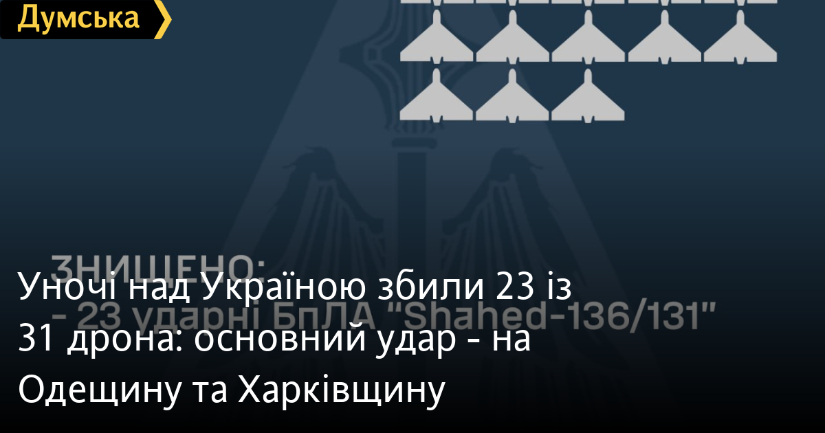 23 дрони-камікадзе збили в небі Одеської та Харківської області в ніч на 10 лютого.