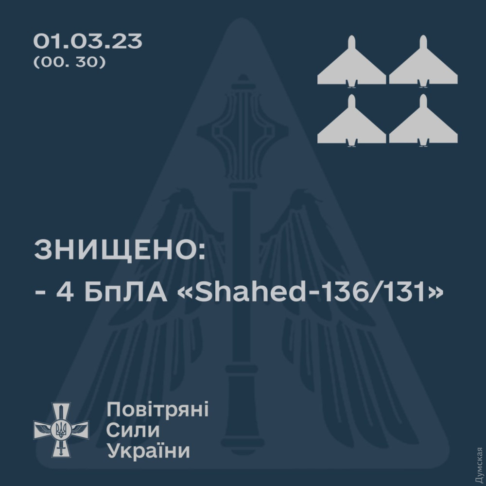 Противник уночі атакував чотирма дронами-камікадзе Shahed-136.