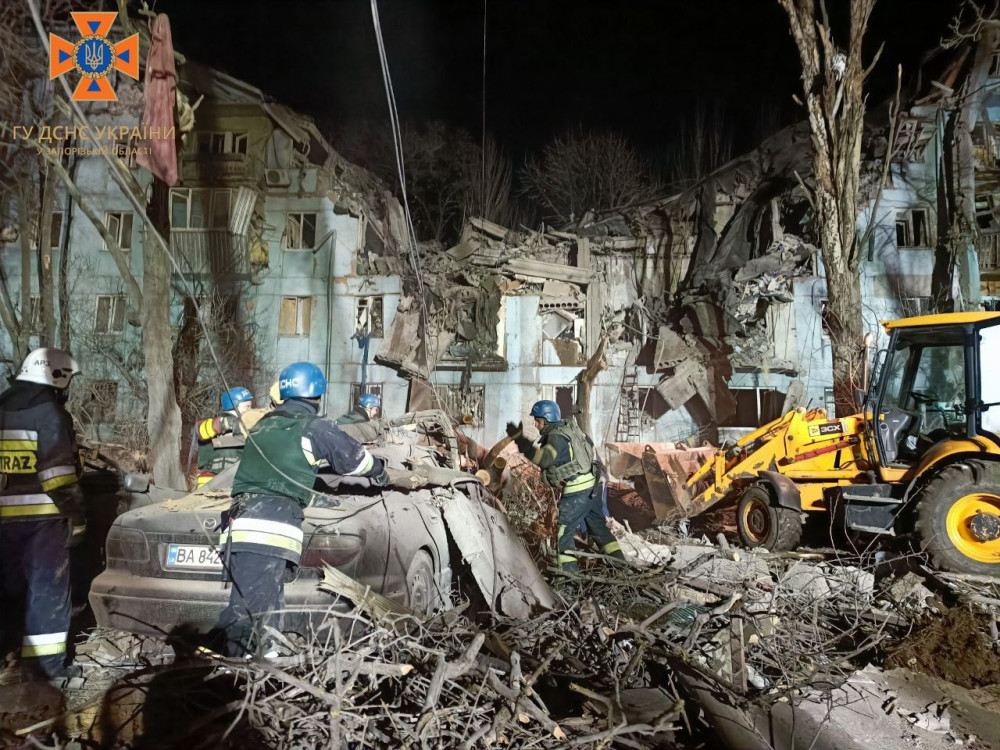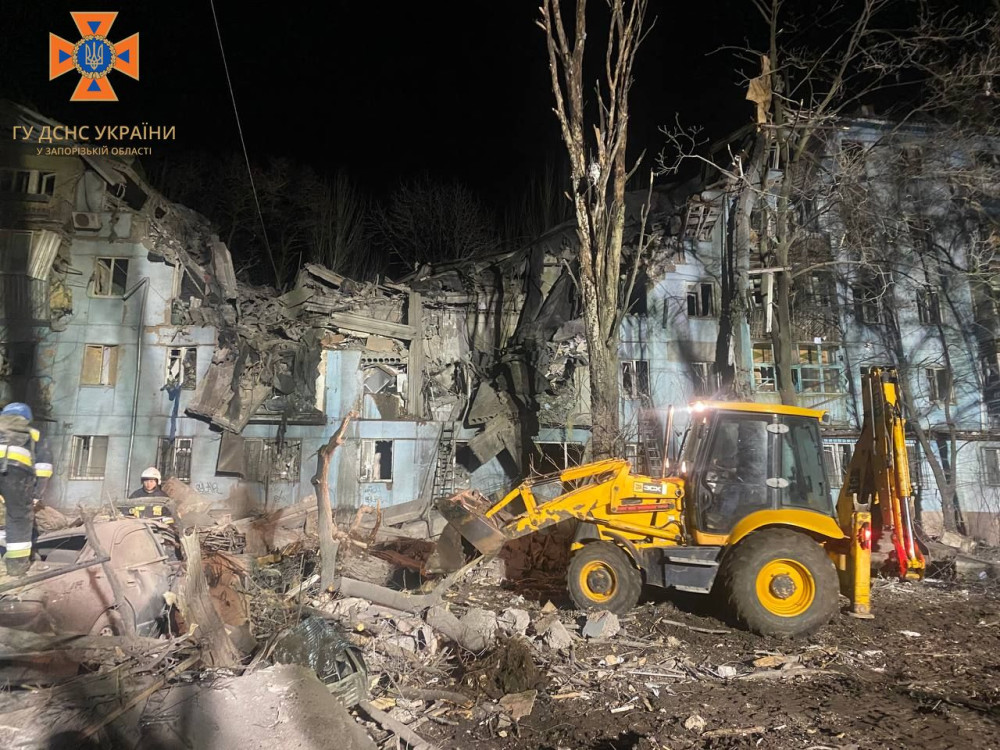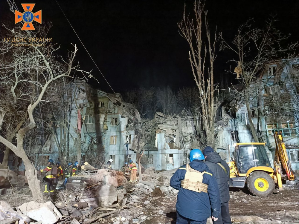 Як повідомили в поліції Запорізької області, ворожий снаряд зруйнував три поверхи в п'ятиповерхівці. Знищено понад десять квартир з першого до п'ятого поверху. Крім того, уламками та вибуховою хвилею пошкоджено довколишні будинки.