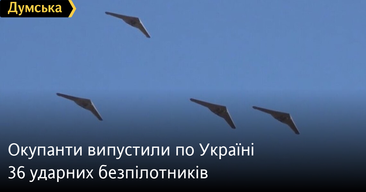 36 ударних безпілотників іранського виробництва Shahed-136/131 і шість ракет «Калібр» випустили вночі окупанти по території України.