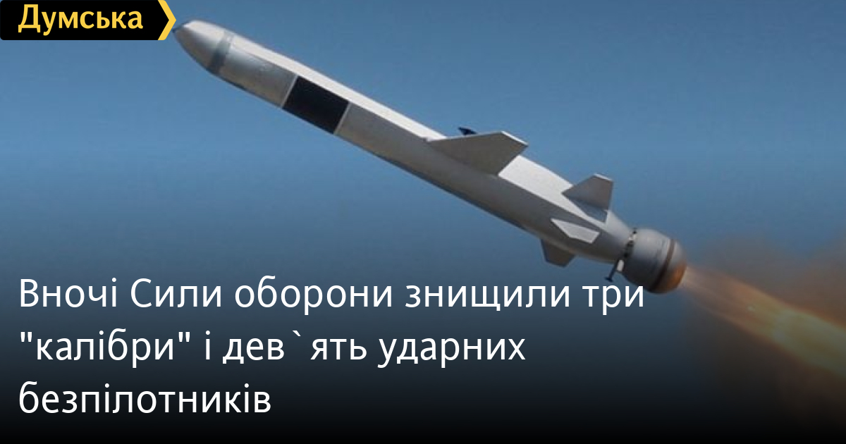 Три крилаті ракети «Калібр» та дев’ять іранських ударних дронів Shahed-136/131 знищили українські захисники в ніч на 14 червня.