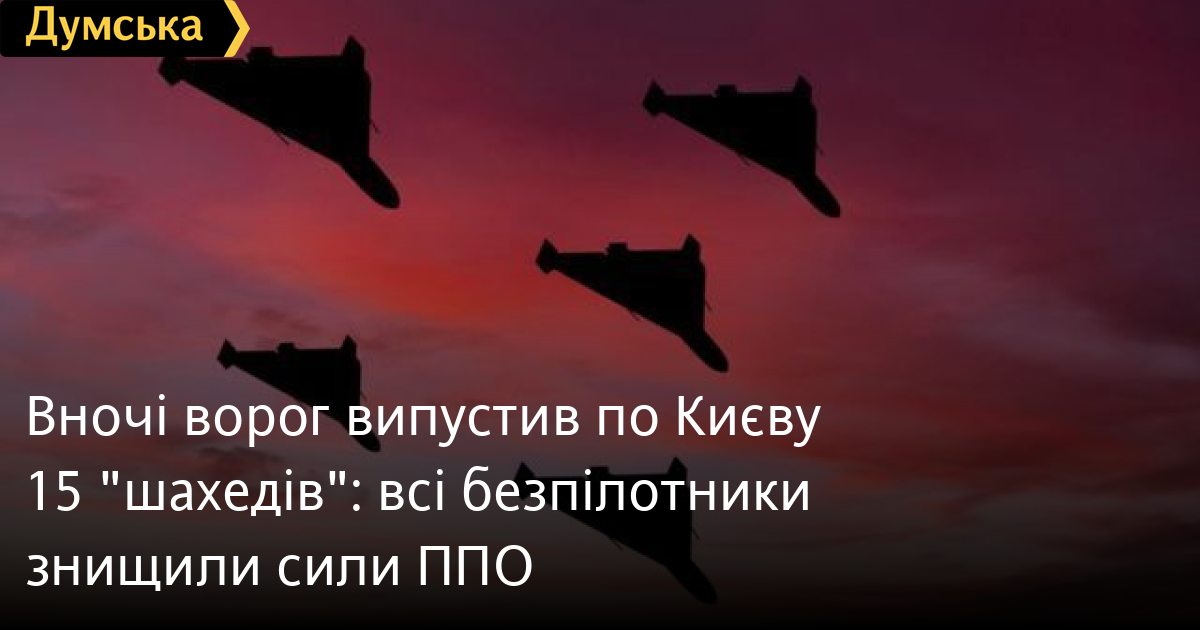 Півтора десятка ударних безпілотників Shahed-136/131 випустили російські окупанти вночі по Києву.