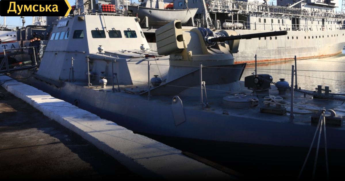 Торжественная церемония присвоения имени новому малому бронированному артиллерийскому картеру типа «Гюрза-М» прошла сегодня на военно-морской базе «Юг» в Практической гавани одесского порта. Как передает корреспондент «Думской», катер с бортовым номером Р-180 будет называться «Костополь» — в честь города в Ровненской области, где родился морской пехотинец Алексей Кондратюк, павший в марте 2017 года на фронте российско-украинской войны. Командующий ВМСУ адмирал Игорь Воронченко вручил командиру МБАКа памятную табличку с этой информацией. Седьмая по счету «Гюрза» немного отличается от своих предшественниц. Командир катера рассказал, что на нем существенно улучшено радиоэлектронное оборудование. Известно, что на «Костополе», кроме РЛС, которая позволяет отслеживать воздушную и надводную обстановку, установлена гидроакустическая станция немецкого производства для обнаружения подводных целей. С ее помощью, в частности, можно бороться с подводными диверсантами. Также катер вооружат неуправляемыми ракетами. На церемонии присутствовала супруга погибшего морпеха с его маленьким сыном, а также мэр Костополя, который вручил экипажу икону из янтаря и книги об этом украинском городке. Игорь Воронченко отметил, что 75 военнослужащих ВМСУ погибли на востоке, защищая нашу страну. Флот постепенно пополняется новыми кораблями, на очереди — принятие в состав ВМСУ двух десантно-штурмовых катеров типа «Кентавр», еще одного, восьмого, МБАКа и нового разведывательного корабля. СМЕРТЬ РОСІЙСЬКИМ ОКУПАНТАМ! Помітили помилку? Виділяйте слова з помилкою та натискайте control-enter