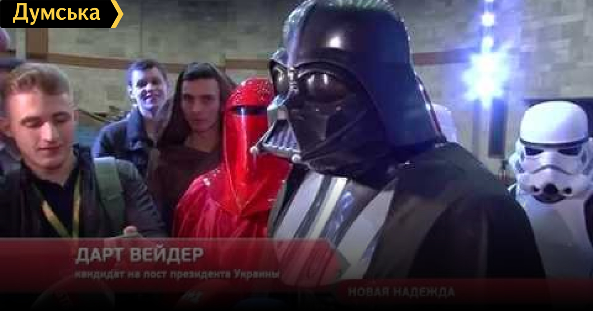 Темная сторона Силы вышла на борьбу за президентское кресло. На 5-м съезде Интернет партии Украины объявили о выдвижении своего кандидата. В ЦИК уже подал документы Владыка Ситх -- Дарт Вейдер.