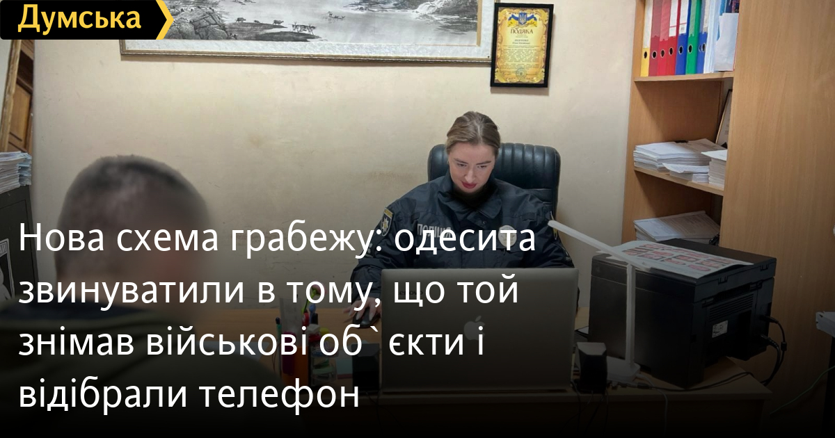 Нова схема грабежу: одесита звинуватили в тому, що той знімав військові об`єкти і відібрали телефонДвох приятелів, яких підозрюють у грабежі підлітка, відправили під домашній арешт. Вони підійшли до хлопця на проспекті Українських героїв та заявили, що юнак фільмував військові об'єкти, а коли той дістав мобільний, щоб це заперечити, відібрали гаджет та втекли, повідомили в поліції регіону. Хлопчина наздогнав кривдників, вимагаючи повернути смартфон, але отримав ще й удар кулаком в обличчя. За кілька днів поліцейські знайшли правопорушників та повернули телефон власнику. Нападникам повідомили про підозру у грабежі, поєднаному з насильством, яке не є небезпечним для життя чи здоров'я потерпілого, вчиненому за попередньою змовою групою осіб, в умовах воєнного стану (ч. 4 ст. 186 Кримінального кодексу України). Чоловікам загрожує до десяти років за ґратами. Слідство триває. СМЕРТЬ РОСІЙСЬКИМ ОКУПАНТАМ! Помітили помилку? Виділяйте слова з помилкою та натискайте control-enter Новини по цій темі: 29 липня 2025: В Усатово Одеської області сталася перестрілка: поліція працює на місці (відео, оновлено) 28 липня 2025: П'яний на "Ягуарі" або гіпертонік? Звільнений топ-посадовець одеської поліції хоче повернутися на службу 19 червня 2025: Дівчинку, яку шукали сотні одеситів, знайшли вбитою: поліція працює з чоловіком, ймовірно причетним до загибелі 27 травня 2025: Увели гектар в університету: на Одещині засудили земельних аферистів, але без посадки і Хвоста |
