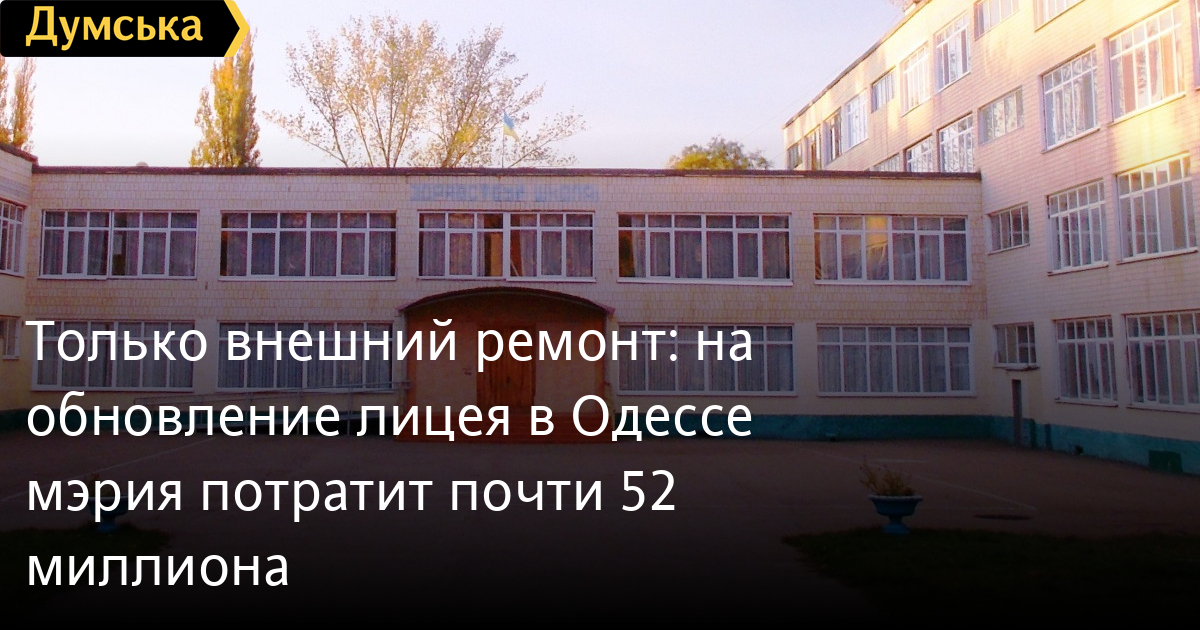 Тільки зовнішній ремонт: на оновлення ліцею в Одесі мерія витратить майже 52 мільйониРемонт ліцею №71 на вулиці 28-ї бригади, 17А (раніше Паустовського) обійдеться Одеській мерії у 51,9 млн гривень. Тендер на масштабне оновлення школи на сайті електронних закупівель Prozorro оголосило Управління капітального будівництва міськради, передає кореспондент «Думської». Згідно з технічним завданням, капремонт стосуватиметься лише зовнішньої частини будівлі та благоустрою території. З фасаду навчального закладу демонтують понад півтори тисячі квадратних метрів старої плитки й облаштують сучасний вентильований термофасад. Запланований й ремонт ґанків, заміна вікон на металопластикові з новими підвіконнями та відливами. Дах перекриють новим багатошаровим покриттям, утеплять, облаштують стяжку, а також встановлять пожежні драбини та водовідвід. Доріжки біля ліцею вимостять тротуарною плиткою, встановлять бордюри та нову металеву огорожу довжиною 220 м із воротами та хвіртками. Передбачене озеленення після видалення аварійних дерев. Для учнів облаштують дитячий майданчик із гойдалками, ігровим комплексом та каруселлю для дітей з особливими фізичними потребами, а також спортивний куточок із тренажерами. Окремо у проєкті прописані елементи доступності: пандуси й тактильна плитка для маломобільних груп населення. Будівельники вивезуть після робіт цілу гору сміття — майже 300 тонн. А виконати все це підрядник повинен до грудня 2026 року. Зазначимо, що у 2020 році біля 71-го ліцею після реконструкції відкрили багатофункціональний спортивний майданчик — з баскетбольним і волейбольним майданчиком, тенісним кортом, футбольним полем, тренажерним залом і біговими доріжками. СМЕРТЬ РОСІЙСЬКИМ ОКУПАНТАМ! Помітили помилку? Виділяйте слова з помилкою та натискайте control-enter |