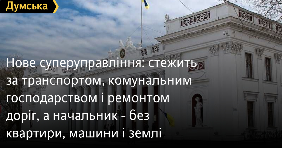 Нове суперуправління: стежить за транспортом, комунальним господарством і ремонтом доріг, а начальник — без квартири, машини і землі