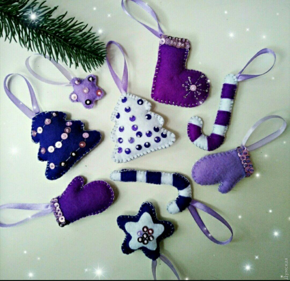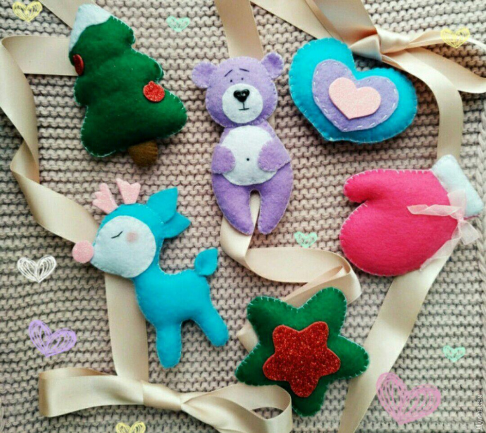 Еще один интересный вариант нарядить елочку практичными украшениями предлагает одесситка Кристина Нестеренко. Девушка делает аппликации из разноцветного фетра, которые в конечном итоге превращаются в милые игрушки.