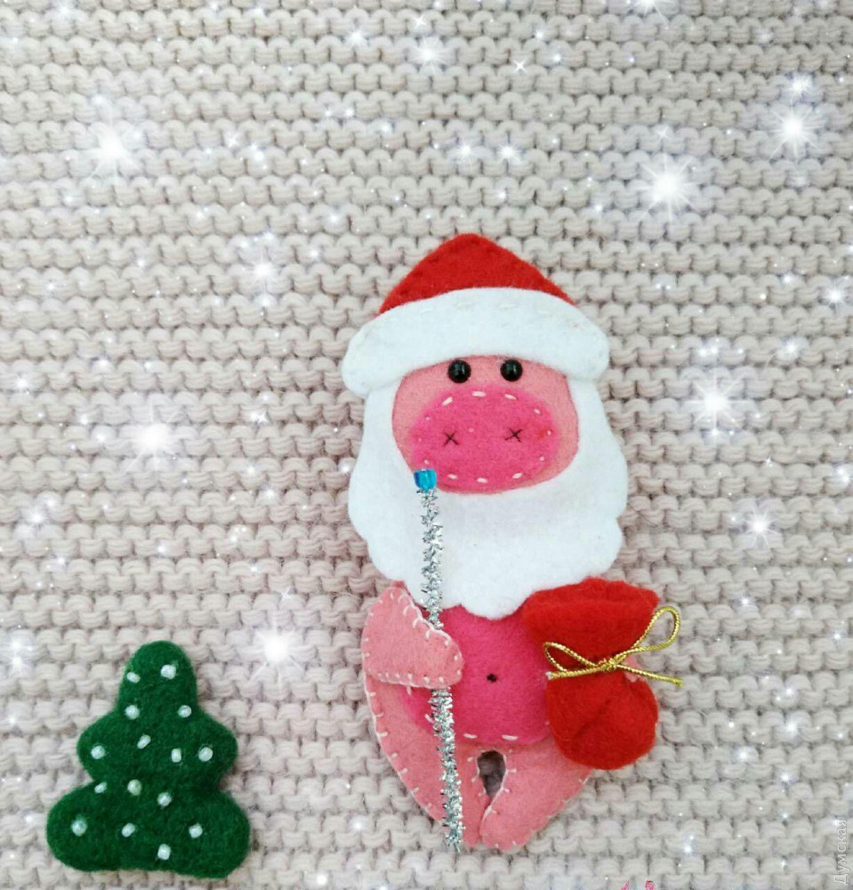 Тут есть олени, Деды Морозы, варежки, звездочки и, конечно же, символ грядущего года – свинки. Такие игрушки гипоалергенны и безопасны для детей. Стоимость фетровых изделий от 60 до 150 грн.