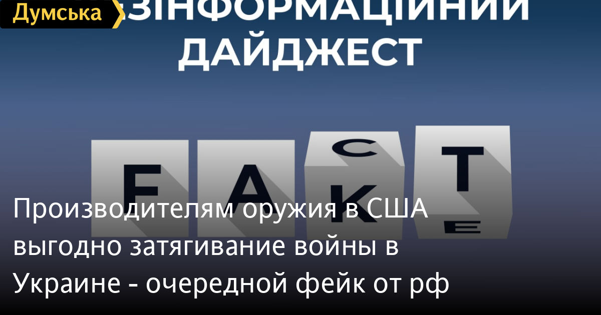 Как сообщает центр противодействия дезинформации при СНБО Украины, очередную дезинформацию в рф посвятили американским военным корпорациям, которые якобы обогащаются на войне в Украине.