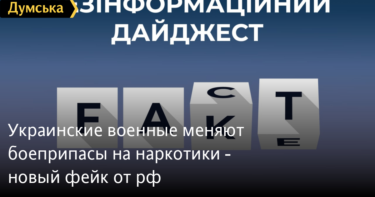 Также в росСМИ распространяют фейк о том, что «пленный украинский военный рассказал об употреблении наркотиков сослуживцами, в частности командирами. По его словам, он даже был свидетелем обмена боеприпасов на наркотики».